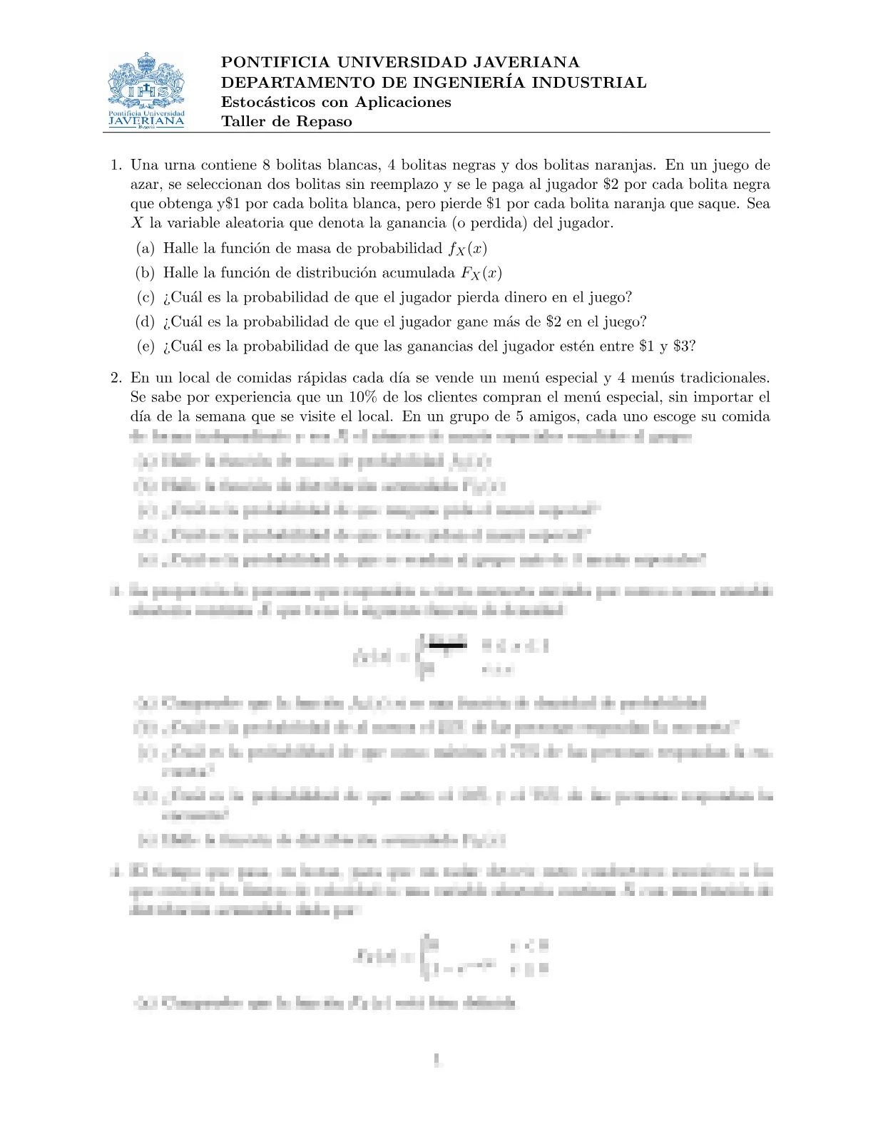 033901 - Probabilidad y Procesos Estocásticos
