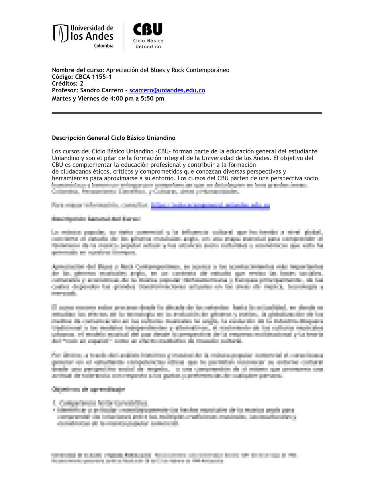 CBCA1155 - Apreciación del Blues y Rock Contemporáneo (Ciclo 2 de 8 Semanas)