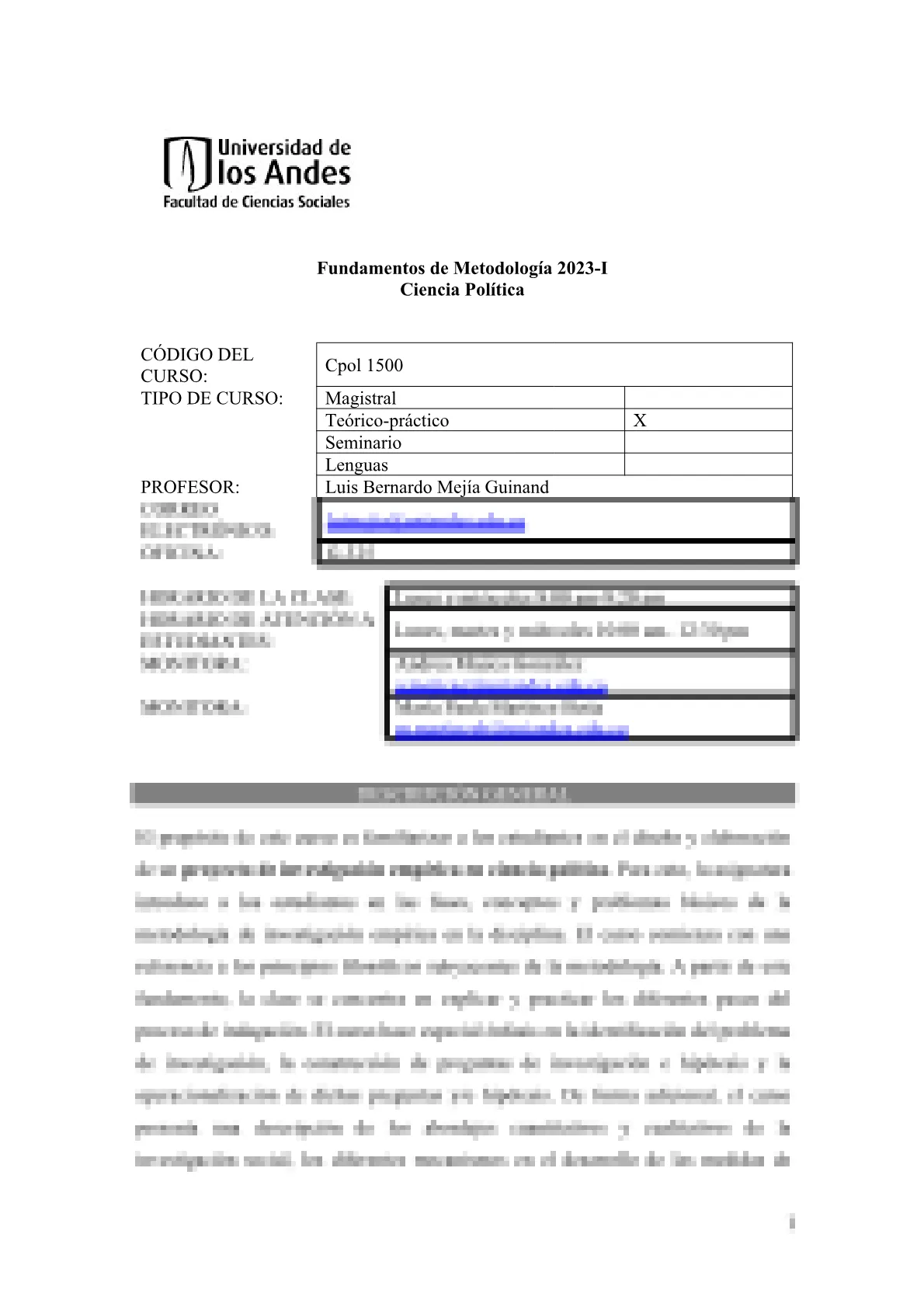 Busca un profesor, materia o programa en Universidad de los Andes...