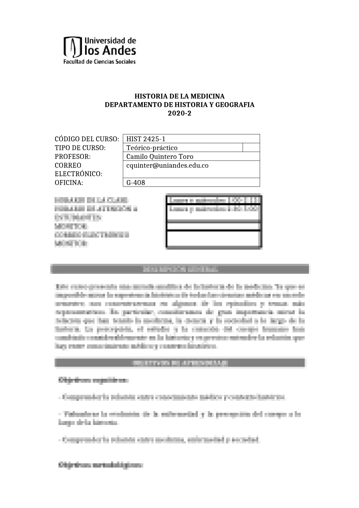 HIST2420A - Historia De La Medicina