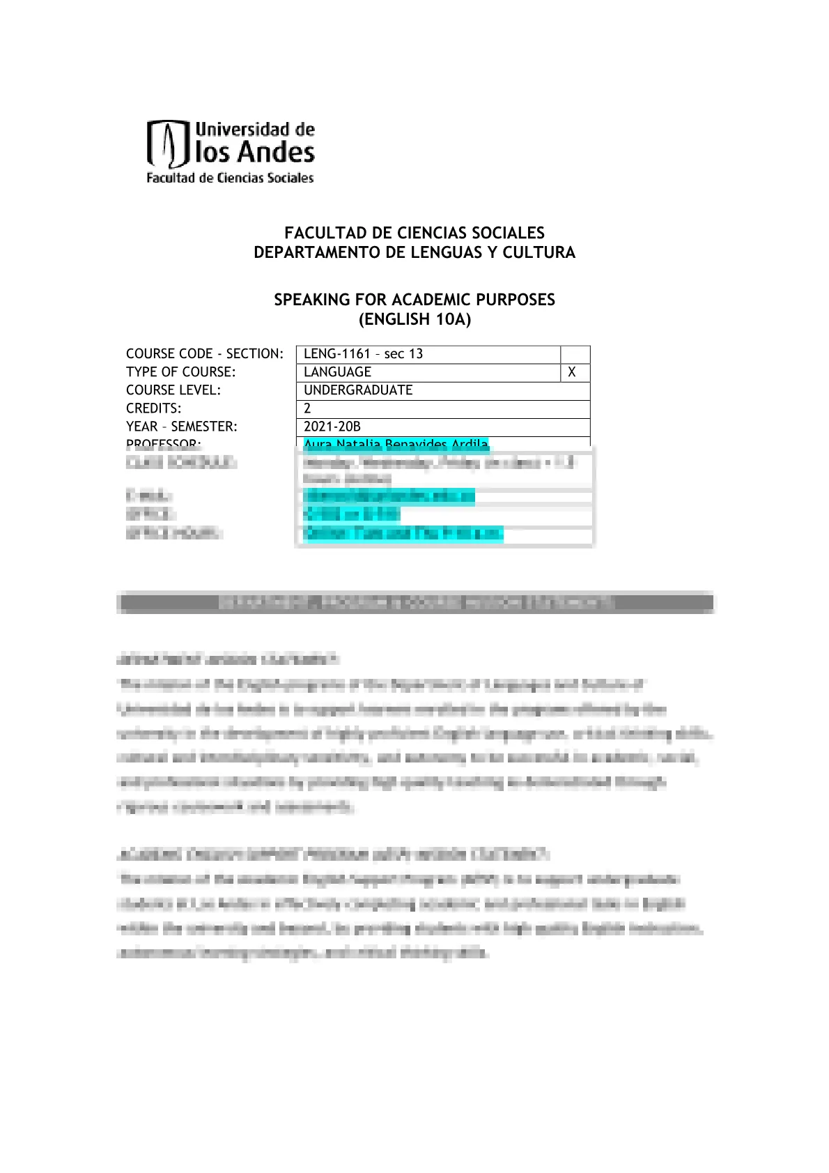 Programa de English 10A (2021-2)