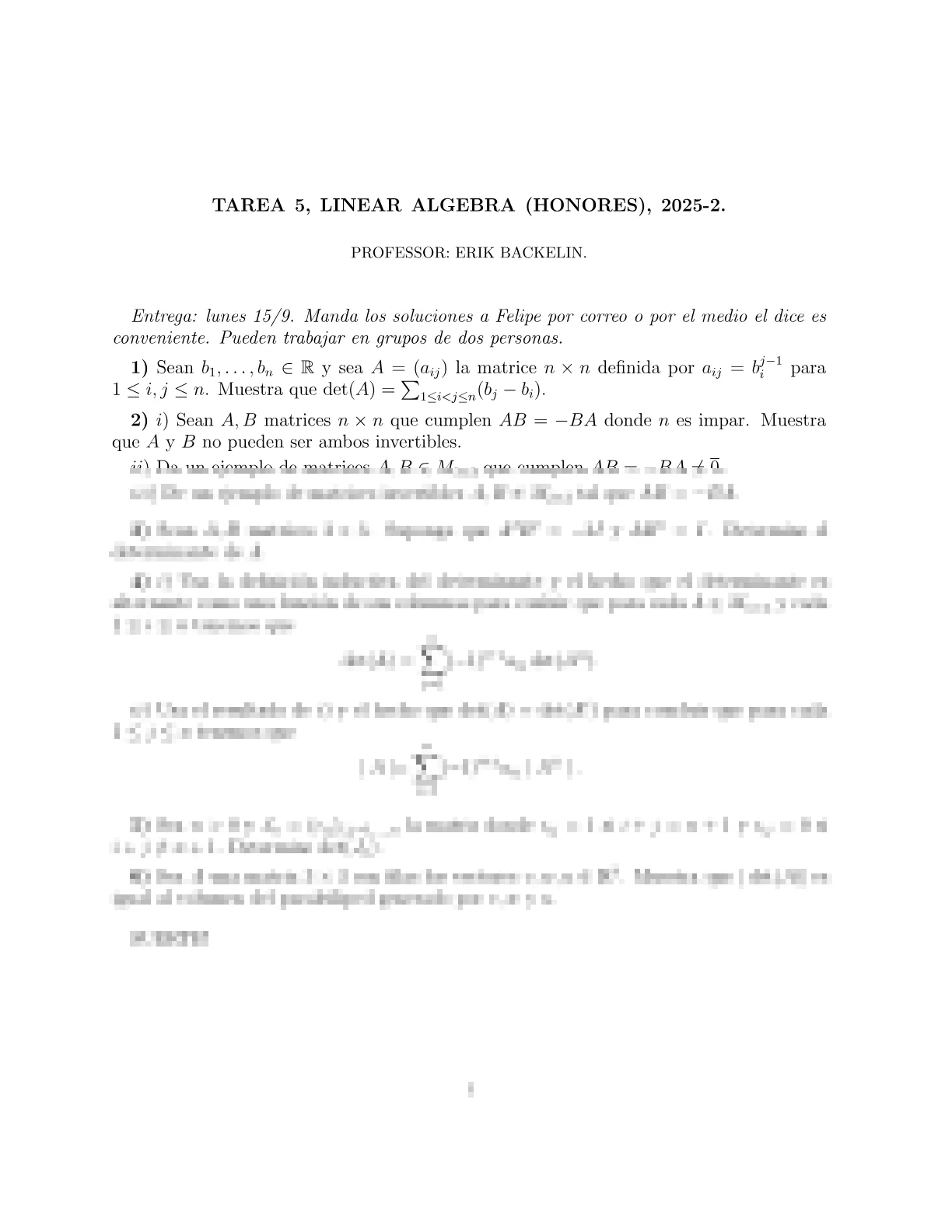 MATE1106 - Algebra Lineal 1(Honores)