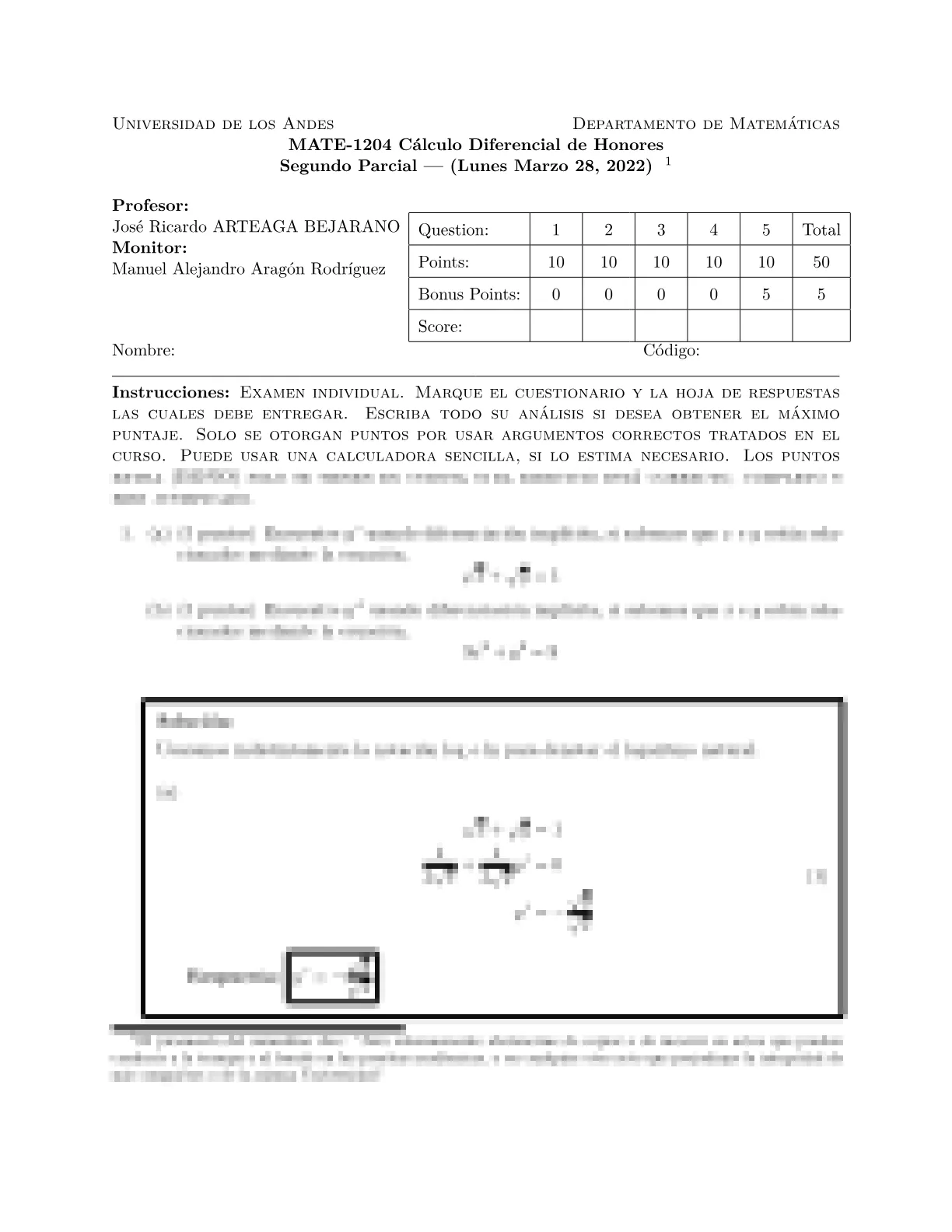 MATE1204 - Calculo Diferencial (Honores)