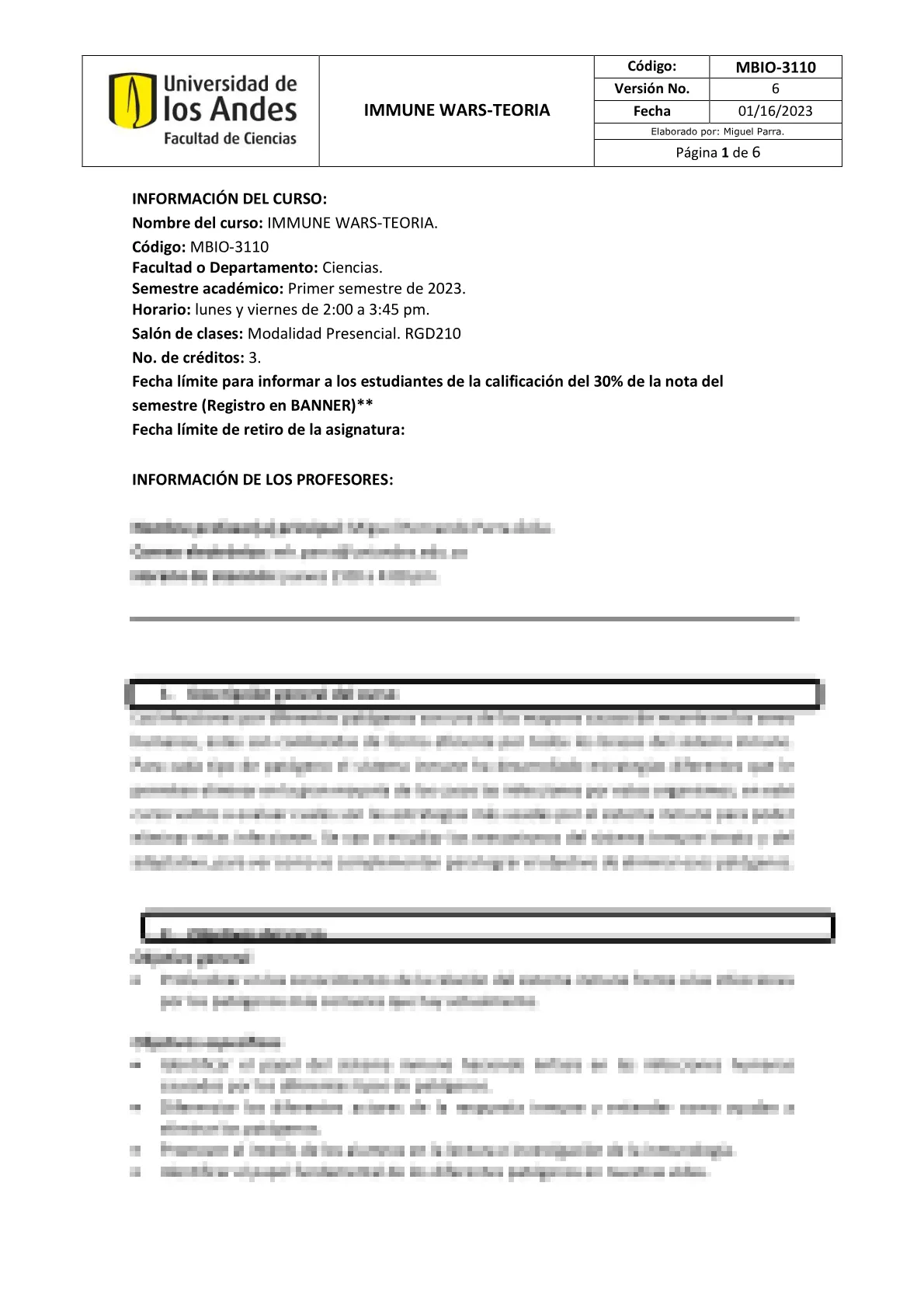 MBIO3110 - Inmune Wars. Sistema Inmune de Patogenos (Ciclo 1 de 8 Semanas)