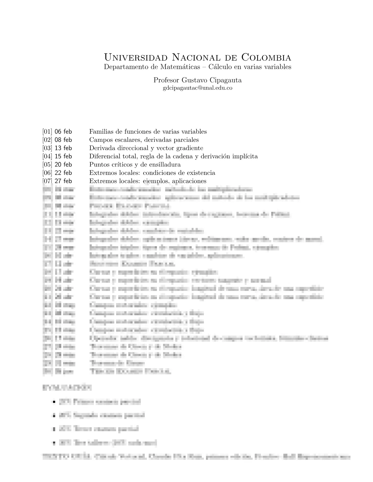 Temario y porcentajes de calificación.