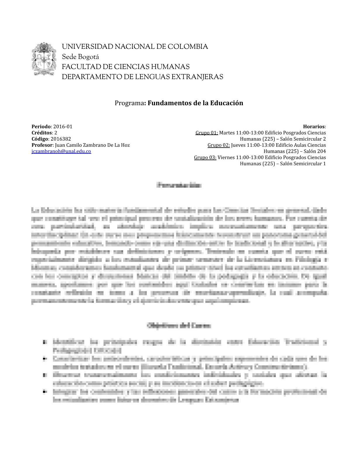 Busca un profesor, materia o programa en Universidad Nacional de Colombia...
