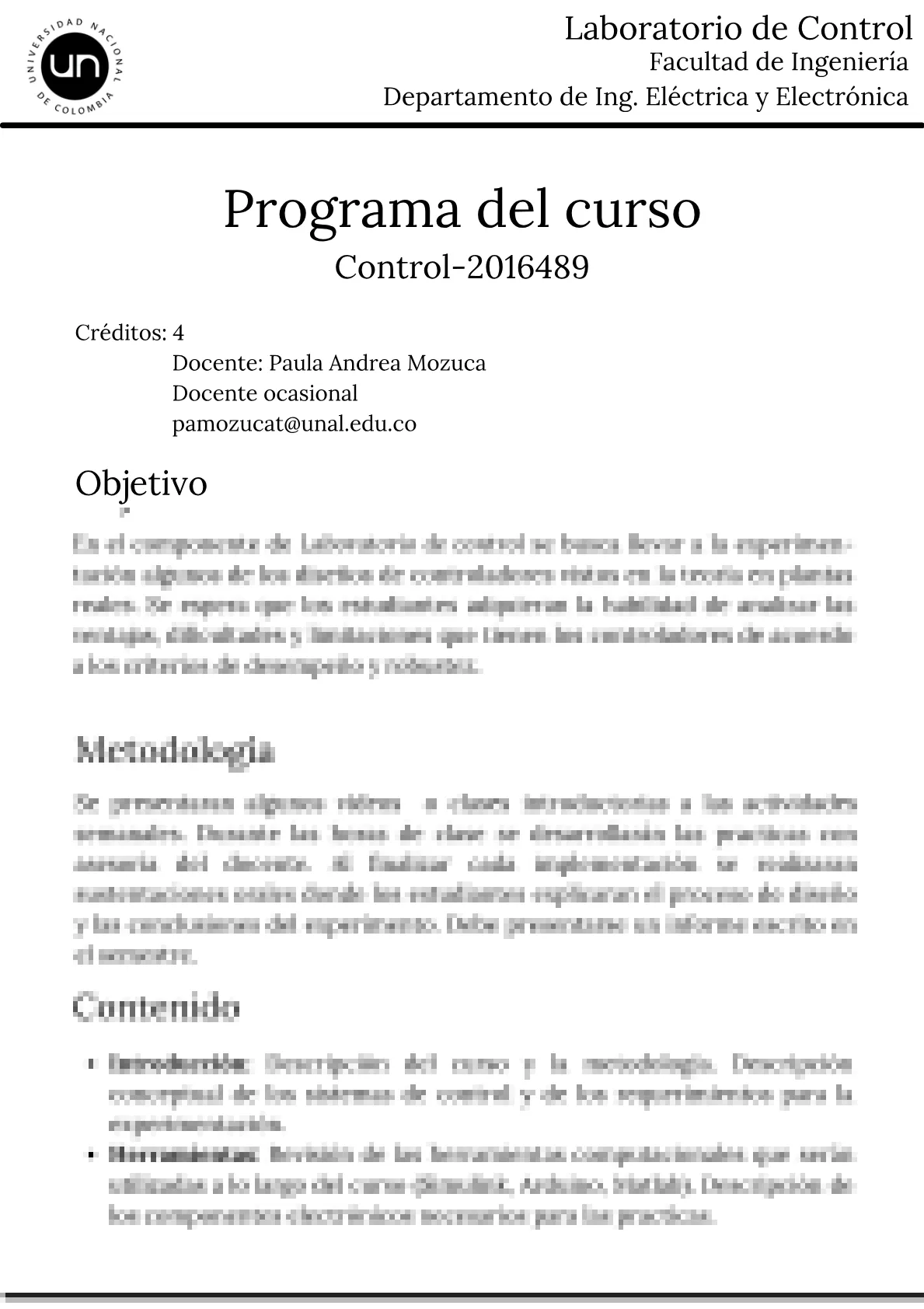 Busca un profesor, materia o programa en Universidad Nacional de Colombia...
